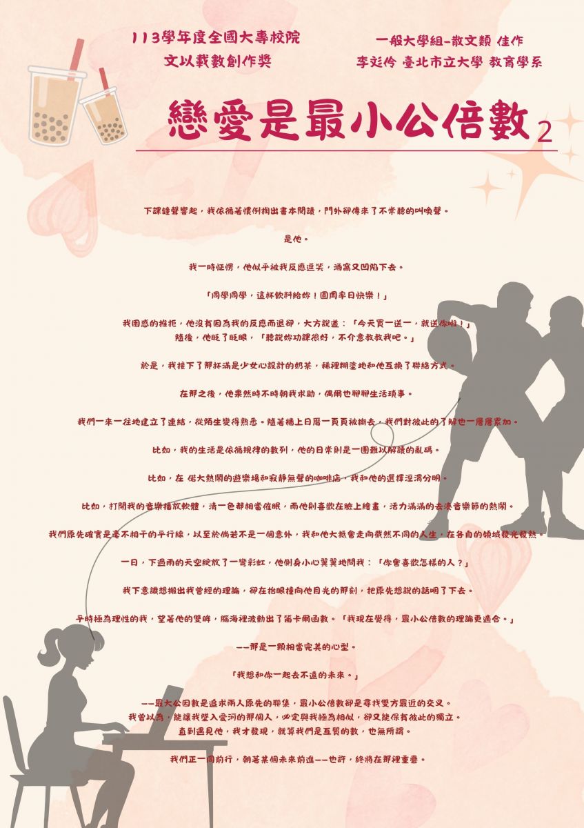 我邊走邊回顧著方才的情境,這樣的自娛自樂是我這個「數學怪胎」的日常。 「砰!」瞬間的恍神讓我撞上了某人。