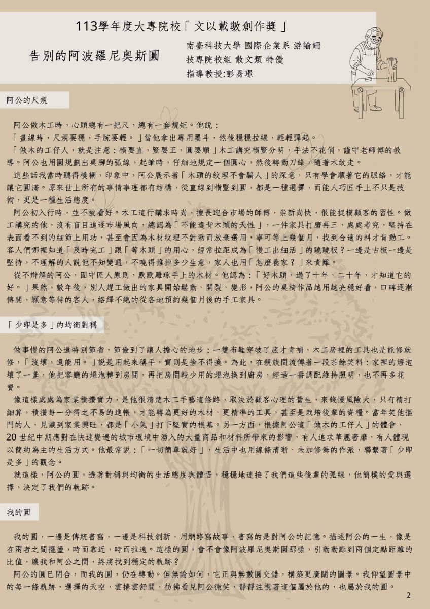 我的圓,一邊是傳統書寫,一邊是科技創新,用網路寫故事,書寫的是對阿公的記憶。 描述阿公的一生,像是在兩者之間擺盪,時而靠近,時而拉遠。這樣的圓,會不會像阿波羅尼奧斯圓那樣,引動動點到兩個定點距離的比值,讓我和阿公之間,終將找到穩定的軌跡?